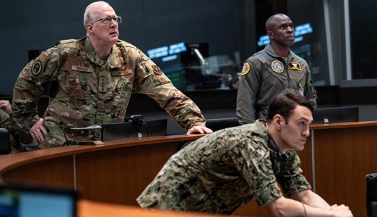 Tracy Letts trong vai Tướng Anthony Brady và Gbenga Akinnagbe trong vai Thiếu tướng Steven Kyle tại Bộ Tư lệnh Chiến lược Hoa Kỳ
