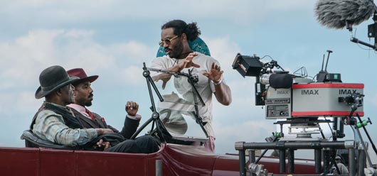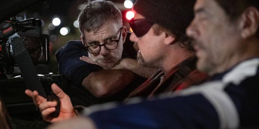 Đạo diễn Josh Safdie (phải) và Timothée Chalamet trên trường quay Marty Supreme
