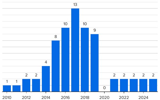 Phim Hollywood đạt doanh thu trên 100 triệu đôla tại Trung Quốc Tổng số phim mỗi năm | 2010–2025