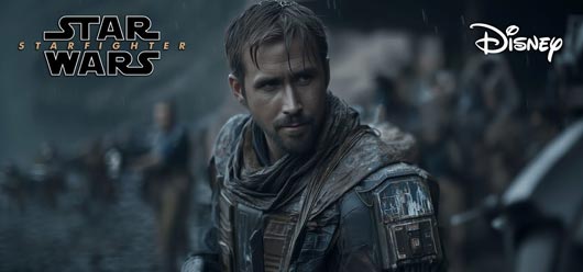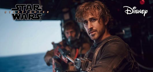 Hình ảnh đầu tiên của Starfighter cho thấy Ryan Gosling, với đầy đủ trang phục và hóa trang, ngồi trên chiếc Speeder cùng với nam diễn viên Flynn Gray