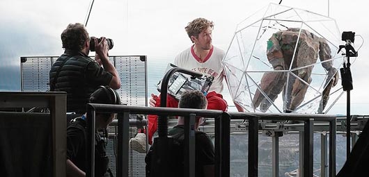 Ryan Gosling trong cảnh quay với người ngoài hành tinh Rocky, sử dụng một con rối hoạt hình