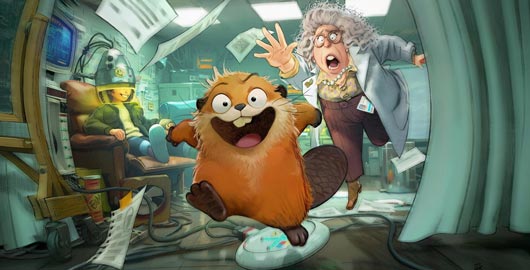 Conner (Sam Richardson) với những con robot hình hải ly, cô bé kêu lên,