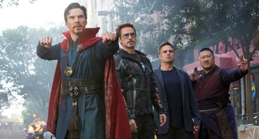 Benedict Cumberbatch cho biết nhân vật Doctor Strange của anh (trái, trong Avengers: Infinity War) sẽ “ngồi ngoài” xuất phẩm Doomsday