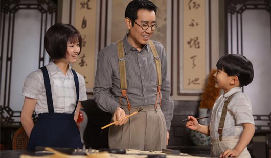 Tướng Ngô Thạch cùng con gái Học Thành (Lã Thần Duyệt) và con trai Kiến Thành (Trương Ngạn Bác)
