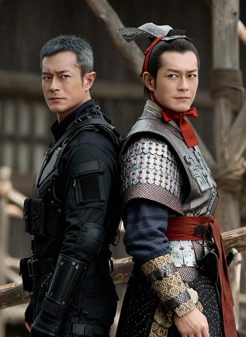 Ngồi: Lâm Phong vai Doanh Chính trong phim bộ truyền hình TVB Cỗ máy thời gian năm 2001; đứng: trong phim điện ảnh Tầm Tần ký