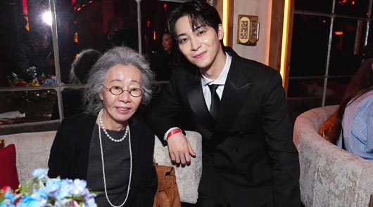 Youn Yuh Jung và Han Gi Chan tại bữa tiệc sau buổi ra mắt phim The Wedding Banquet của Bleecker Street và ShivHans Picture ở Los Angeles ngày 14 tháng 4 năm 2025
