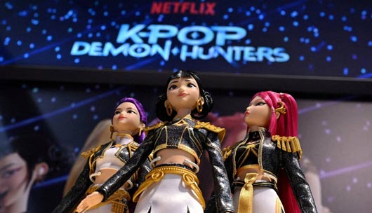Đồ chơi mô hình nhân vật Kpop Demon Hunters được trưng bày tại gian hàng của Mattel tại Hội chợ đồ chơi Nuremberg ở Đức vào ngày 26 tháng 1 năm 2026
