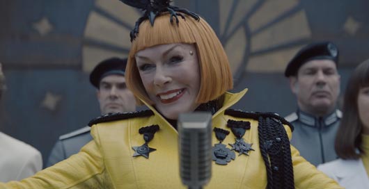 Glenn Close trong vai Drusilla Sickle, nữ hộ tống của Quận 12 trong Đấu trường Sinh tử và là tiền nhiệm của Effie Trinket