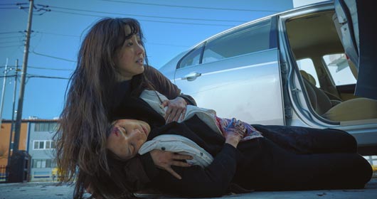 | Nhân vật Do Kyung của Jung Ryeo Won trong phim Woman in a White Car vô cùng đau khổ và hoảng loạn, đang đỡ một người phụ nữ bê bết máu và kêu cứu