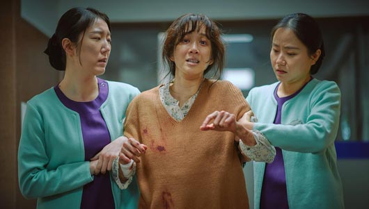 hoảng loạn, nhân vật Do Kyung của cô đang đỡ một người phụ nữ bê bết máu