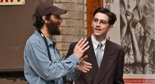 | Josh Safdie và Timothée Chalamet trên trường quay Marty Supreme.