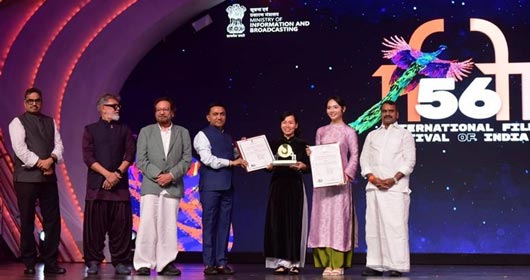 Đạo diễn Nguyễn Phương Anh và nữ diễn viên Trần Quân nhận giải Chim Công Vàng của IFFI