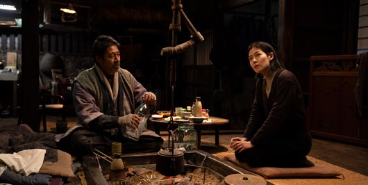 Người chủ nhà trọ trung niên (Shinichi Tsutumi, trái) là kẻ cô độc nhưng lại tò mò về nghề nghiệp của vị khách duy nhất này