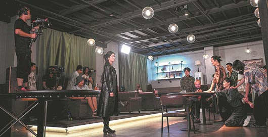 Bức ảnh không đề ngày tháng này cho thấy trường quay một phim bộ siêu ngắn tại Trung tâm Video ngắn Quốc tế Thượng Hải