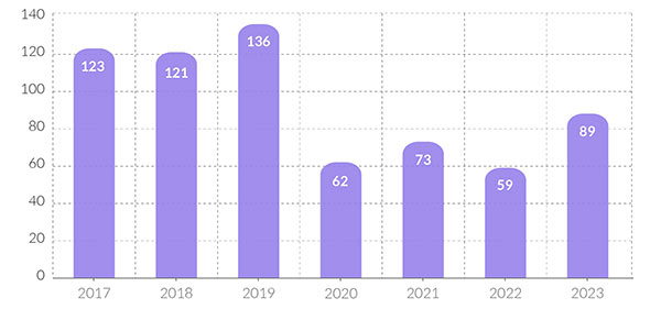 Phim nhập khẩu chỉ chiếm 17,4% doanh thu phòng vé năm 2023, thấp nhất kể từ năm 2014. Con số này là 37,9% vào năm 2019, theo Beacon.