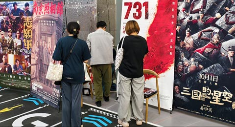 Khán giả xem phim đứng trước các áp phích phim tại một rạp chiếu ở Thượng Hải, ngày 29 tháng 9 năm 2025