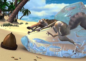 Scrat và quả hạch dạt vào một bờ biển và gã mắc kẹt trong một tảng băng