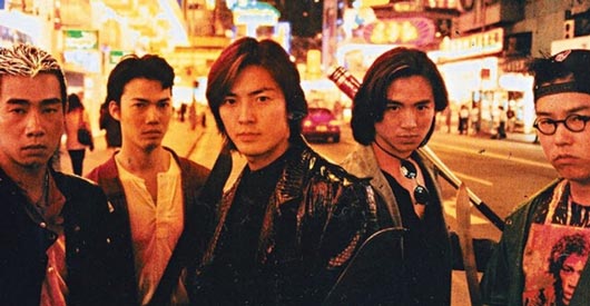 Từ trái sang: Trần Tiểu Xuân, Tạ Thiên Hoa, Trịnh Y Kiện, Chu Vĩnh Đường và Lâm Hiểu Phong trong một cảnh phim Người trong giang hồ (1996)