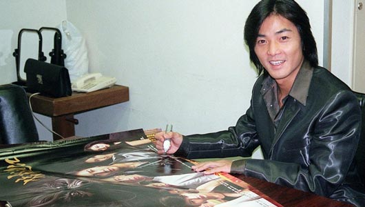 Trịnh Y Kiện ký tặng poster phim Người trong giang hồ II tại Liên hoan phim quốc tế Tokyo năm 1996