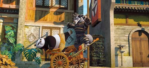 Po, bên trái, đấu với Trùm Sói trong Kung Fu Panda 2 [DreamWorks Animation]