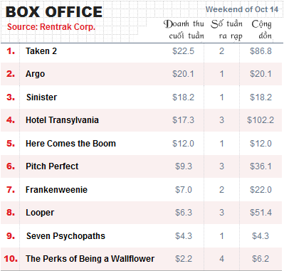 Argo, CinemaScore A+) tách ra khỏi một trong những phim ấn tượng kém nhất năm nay (