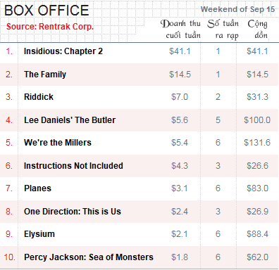 The Family mở màn với con số xoàng xĩnh 14,5 triệu đôla và chỉ nhận được một điểm C từ khán giả.