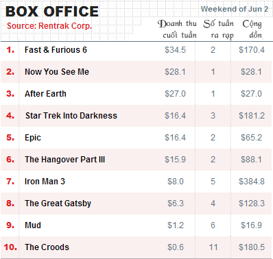 đã bị cướp mất bởi một Fast & Furious 6 vẫn còn rất mạnh (đứng đầu