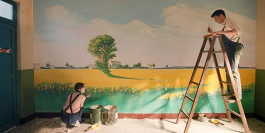 Phương Mục Dương vẽ tranh tường để che đi những vết sơn loang lổ khó coi