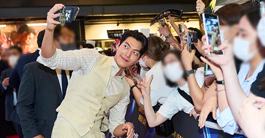 Kim Woo Bin chụp ảnh với fan tại buổi ra mắt phim