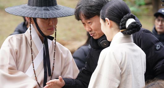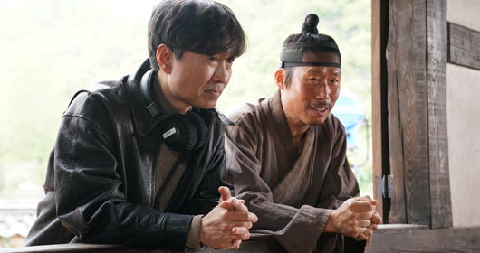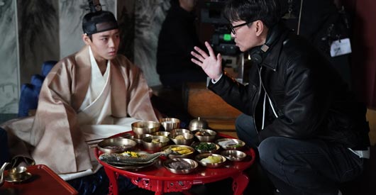 Đạo diễn Chang Hang Jun, trái, và diễn viên Yoo Hae Jin trên phim trường The King’s Warden