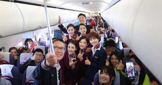 các khách mời và giới truyền thông trên chuyến bay của Hãng hàng không