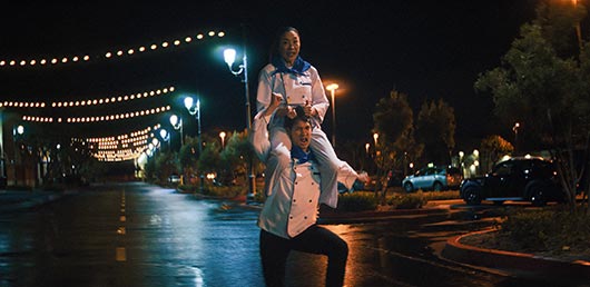 Trong vũ trụ này Evelyn làm một đầu bếp hibachi (có nghĩa là bát lửa, một thiết bị nướng của Nhật Bản) bên cạnh Chad (Harry Shum Jr. từ Glee). Cấp trên của Evelyn bảo cô phải tăng tốc lên vì kỹ năng đầu bếp của cô đang tụt lại còn Chad đang chiếm vị trí chính. Nhưng đầu bếp Evelyn bắt gặp Chad trong bếp và phát hiện dưới mũ của anh ta là một con gấu mèo biết hát biết nấu ăn đang điều khiển anh ta, như một phiên bản nhái Ratatouille của Pixar.
