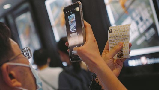 Một người đàn ông giơ máy ảnh điện thoại chụp lại tấm vé