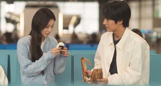 Diễn viên Nhật Bản Eiji Akaso (phải) và diễn viên Hàn Quốc Kang Hye Won trong một cảnh phim Gimbap và Onigiri