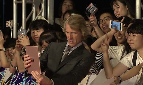 Đạo diễn Michael Bay tại sự kiện chiếu ra mắt Transformers: The Last Knight ở Trung Quốc