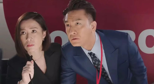 Chị Man (Xa Thi Mạn, trái) và Chủ nhiệm biên tập Lương Cảnh Nhân (Mã Quốc Minh) đấu nhau kịch liệt trong phòng phát tin thời sự