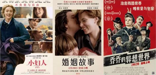 Từ trái qua, áp phích tiếng Trung của Little Women, Marriage Story Jojo Rabbit