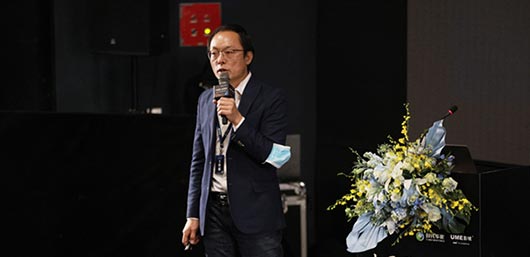 Andrew Chan, tổng giám đốc Timewaying, phát biểu tại sự kiện báo chí giới thiệu HeyLED ở Bắc Kinh, ngày 29 tháng 12 năm 2021