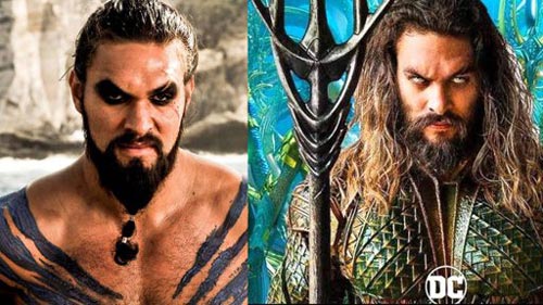 Jason Momoa trong vai Khal Drogo của Game of Thrones (trái) trước khi vào vai siêu anh hùng Aquaman (phải)