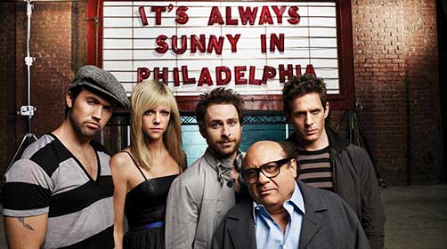 Dàn diễn viên phim truyền hình It's Always Sunny in Philadelphia của FX, từ trái qua: Rob McElhenney, Kaitlin Olson, Charlie Day, Danny DeVito và Glenn Howerton
