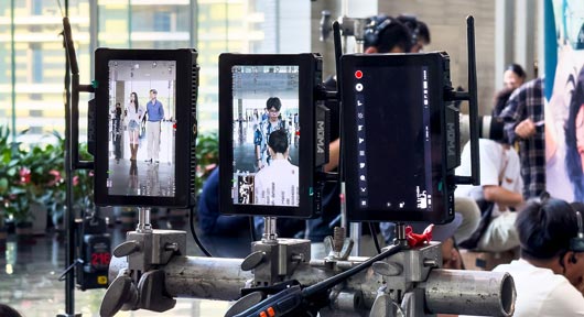 Bức ảnh không đề ngày tháng này cho thấy trường quay một phim bộ siêu ngắn tại Trung tâm Video ngắn Quốc tế Thượng Hải
