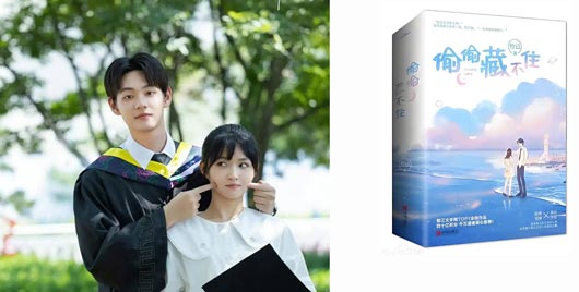 Trái: Hình ảnh quảng cáo cho phim bộ siêu ngắn Hidden Love for You; phải: Bìa sách tiểu thuyết mạng Hidden Love for You