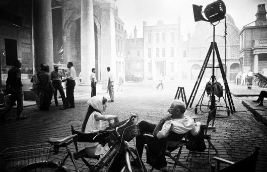 ngày quay phim đầu tiên trên phim trường Covent Garden của bộ phim My Fair Lady tại hãng phim Warner Bros Studios, Burbank, California, năm 1963. Bức ảnh được trưng bày trong triển lãm Backstage Hollywood: The Photographs of Bob Willoughby