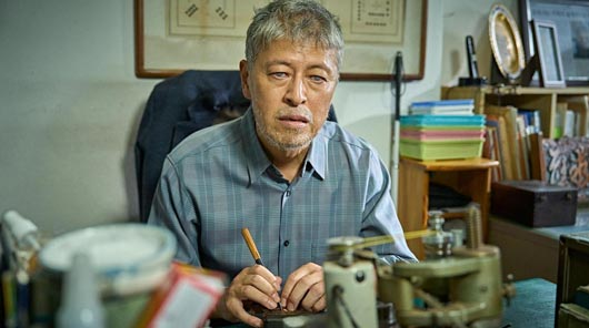 Kwon Hae Hyo vào vai Yeong Gyu lớn tuổi, một người thợ khắc dấu khiếm thị, trong phim The Ugly