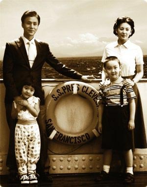 Bức ảnh trắng đen mô phỏng gia đình nhà khoa học Tiễn Học Sâm