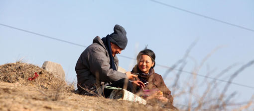 này mô tả cặp vợ chồng già đang quét ngôi mộ của con trai họ nhiều năm